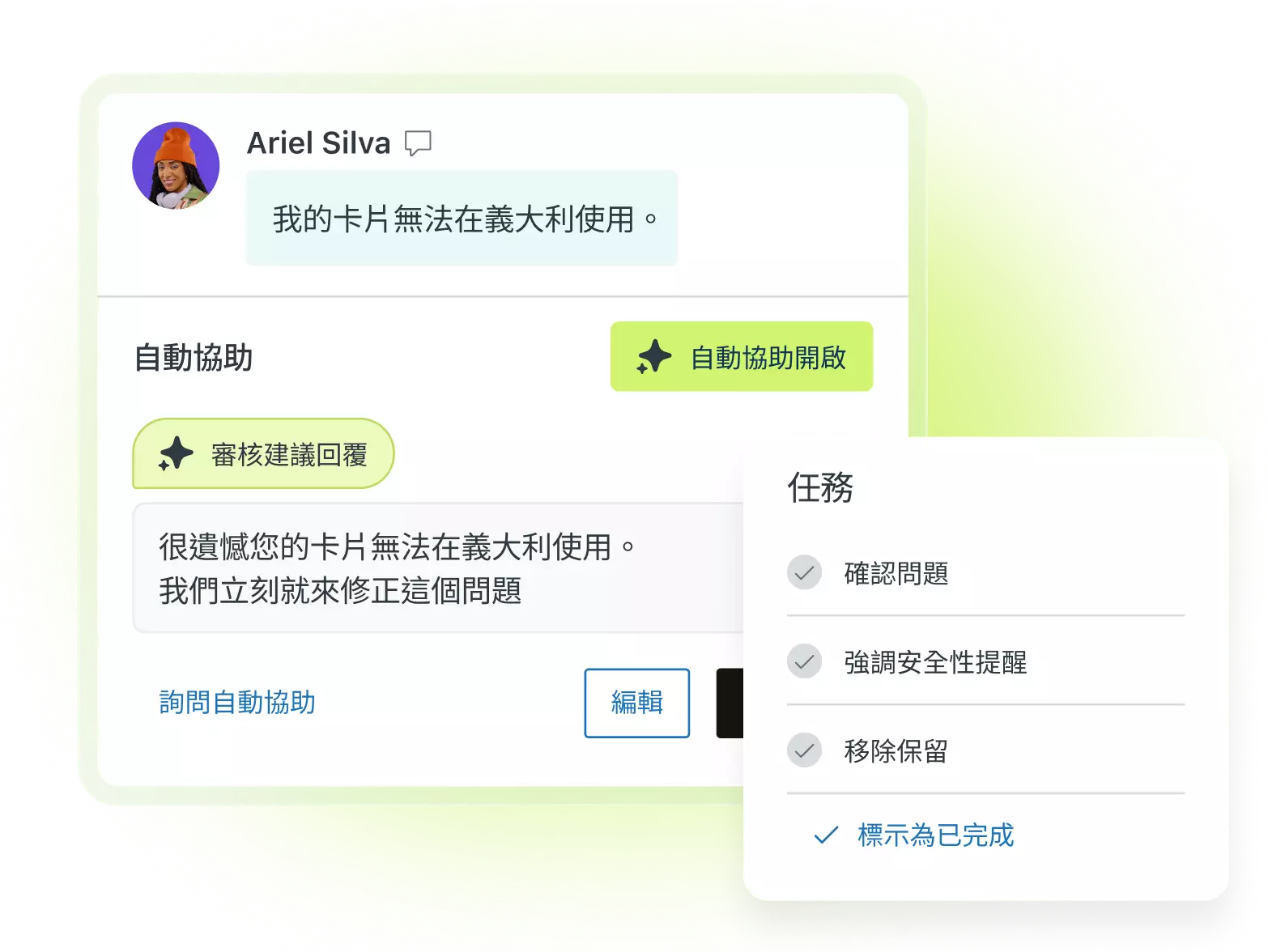 專員助理會引導專員掌握客戶情境,提供建議回覆,並將語氣調整至金融互動中不可或缺的同理心與專業度。