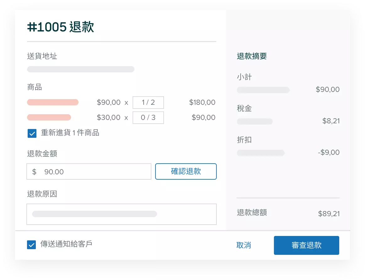 訂單退款和取消等常見工作項目,客服專員可直接在側欄的 app 上執行。 不僅能讓客服專員更專注於對話,同時還能提高客戶滿意度和整體工作效率。