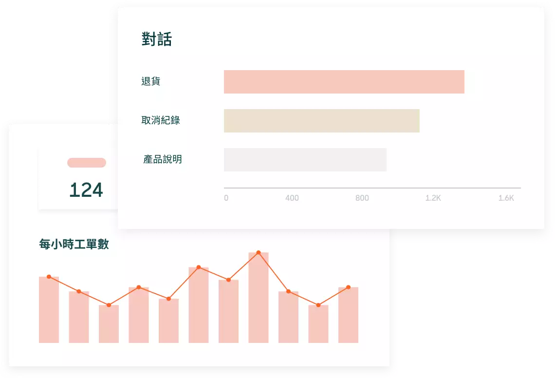除了能細微調整營運方式,還能鑑別出尚需進一步完善之處,例如:哪些產品最常受到客戶提出退款或取消。 使用我們預先建立或可自訂項目的儀表板,所有客戶互動一目瞭然。