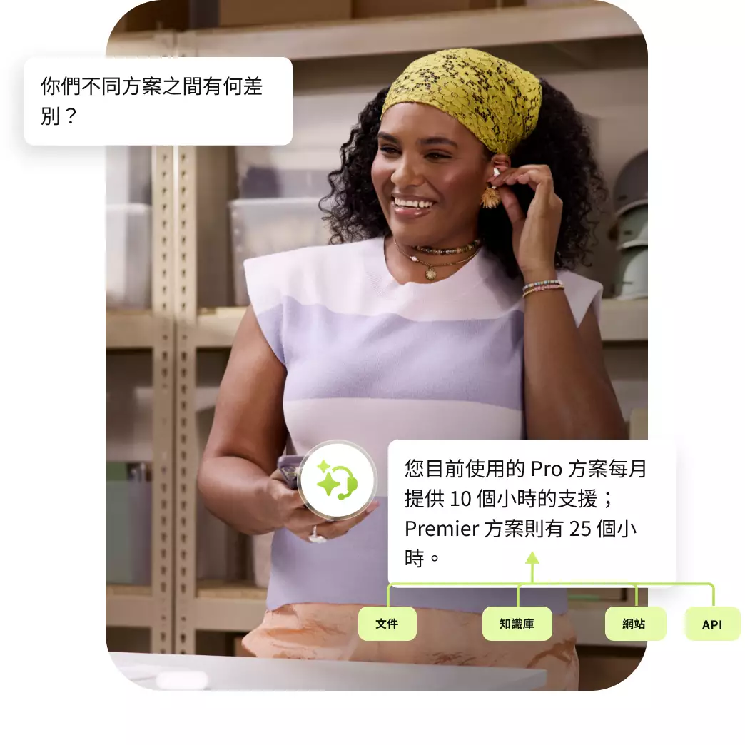 不論是在您的客服中心、或透過 AI 專員延伸至所有其他溝通管道,都能即時呈現解答,隨時為客戶及員工提供快速而可靠的支援服務。